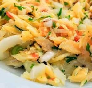 morue cuite (40%), carottes, huile de tournesol, poisson salé séché, eau, oignons, vinaigre, persil, ail.